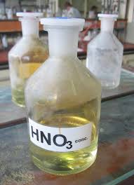 Азотная кислота – так называется сильная кислота и когда условия нормальные она представляет бесцветную жидкость, это достаточно важный продукт, который используется в химической промышленности. Её можно смешивать вместе с водой в любом соотношении. Когда будет отсутствовать вода тогда, азотная кислота считается неустойчивой, она, попадая на свет, станет разлагаться и при обычных температурах выделяет кислород. При этом выделяющейся двуокисью азота станет окрашиваться в желтый цвет, когда наблюдается высокая концентрациях NO2, тогда она становится красной.